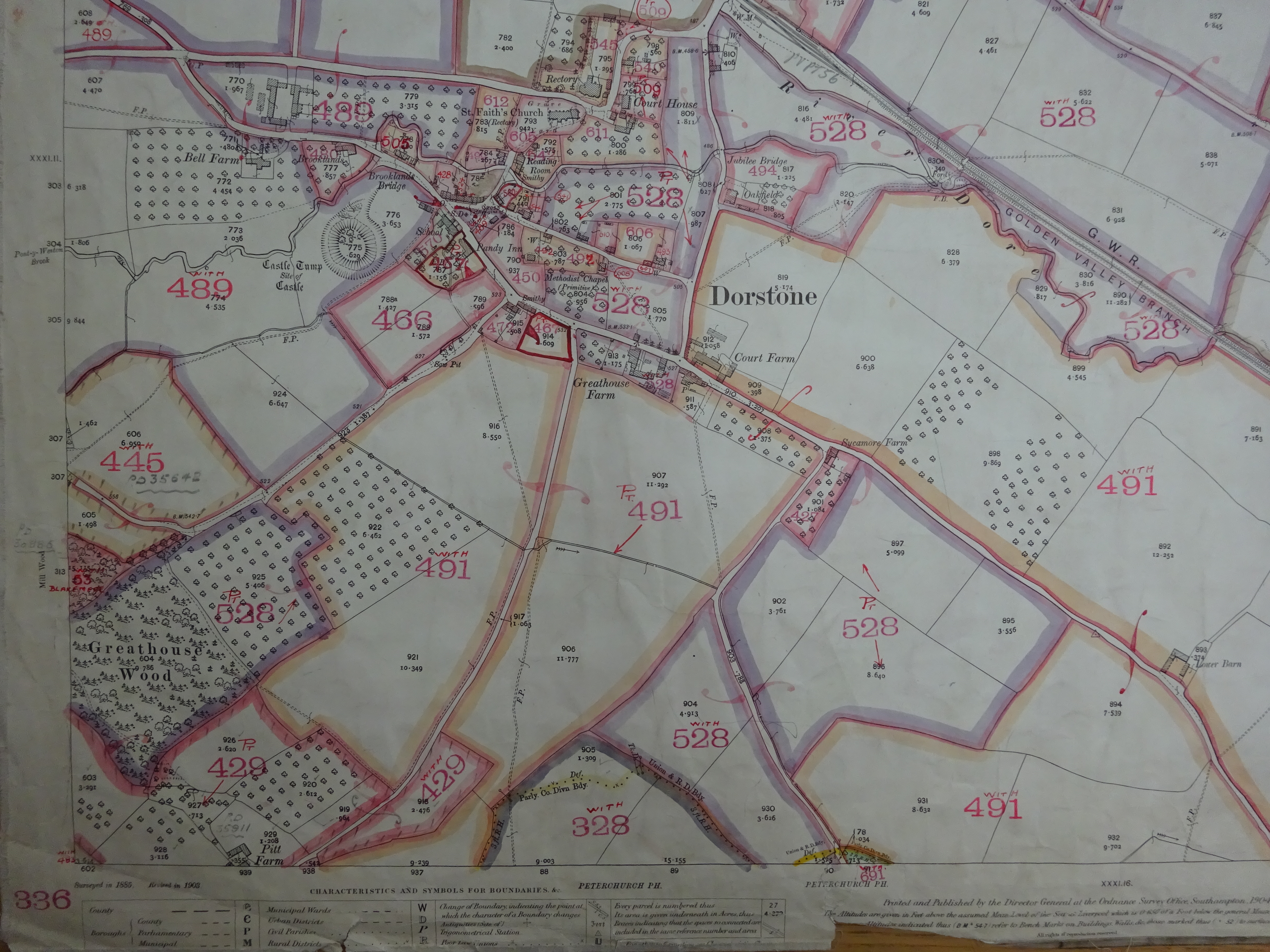 The plans are printed Ordnance Survey map sheets, annotated by the Valuation Office surveyors, and act as an index to the field books. The surveyors marked the plans with plot numbers, referred to as assessment numbers.